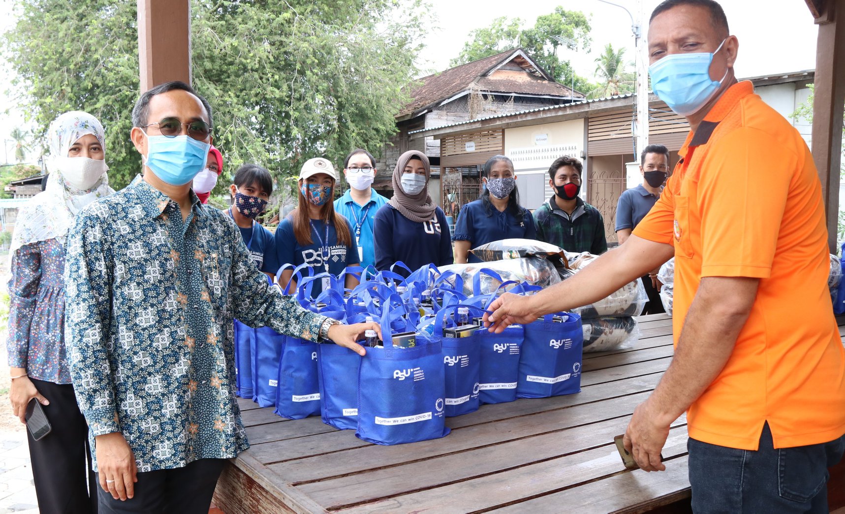 เมื่อเช้าวันนี้ (1 พฤษภาคม 2563) ที่มัสยิดรายอฟาฏอนี โครงการปัตตานีเมืองเศรษฐกิจสร้างสรรค์บนเส้นทางวงแหวนพหุวัฒนธรรม (Pattani Heritage City ภายใต้ Creative Economy) โดย รศ.อิ่มจิต เลิศพงษ์สมบัติ รองอธิการบดีวิทยาเขตปัตตานี นำคณะผู้บริหารและบุคลากรมหาวิทยาลัยสงขลานครินทร์ วิทยาเขตปัตตานี ไปมอบถุงยังชีพให้กับชาวชุมชนตำบลจะบังติกอ อ.เมือง จ.ปัตตานี จำนวน 100 ถุง โดยมีประธานชุมชนตำบลจะบังติกอ ได้แก่ ประธานชุมชนวังเก่า ประธานชุมชนวอกะห์เจะหะ ประธานชุมชนริมคลอง และประธานชุมชนตะลุโบะ เป็นผู้รับมอบ เพื่อนำไปมอบให้กับชาวชุมชน ๆ ละ 25 ถุงต่อไป